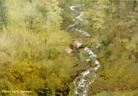 Old NP box cars left in ravine after wreck as it was too difficult to remove them. Photo taken in Cascades