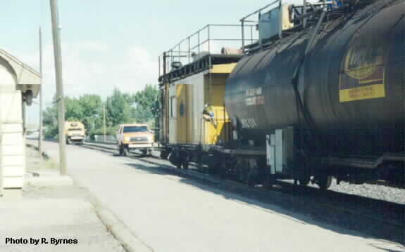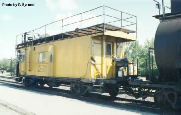 Caboose on end of Loram Rail Grinder Cut Bank