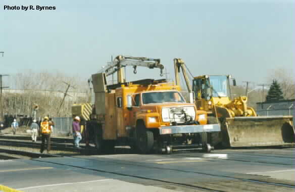 Burlington Northern Hi-Rail trucks at derailment